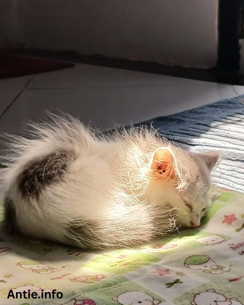 - 09.00 – menjemur kucing di luar agar terkena cahaya matahari